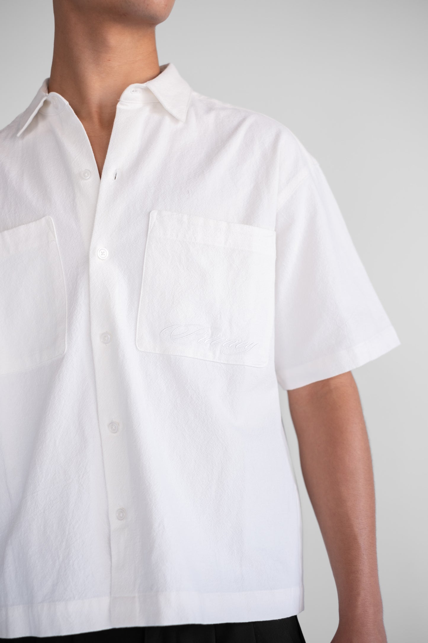 Designed with a boxy, relaxed silhouette, it features double chest pockets and subtle logo embroidery for a clean, branded finish. Whether layered or worn on its own, it’s the kind of staple that adds depth to any fit.