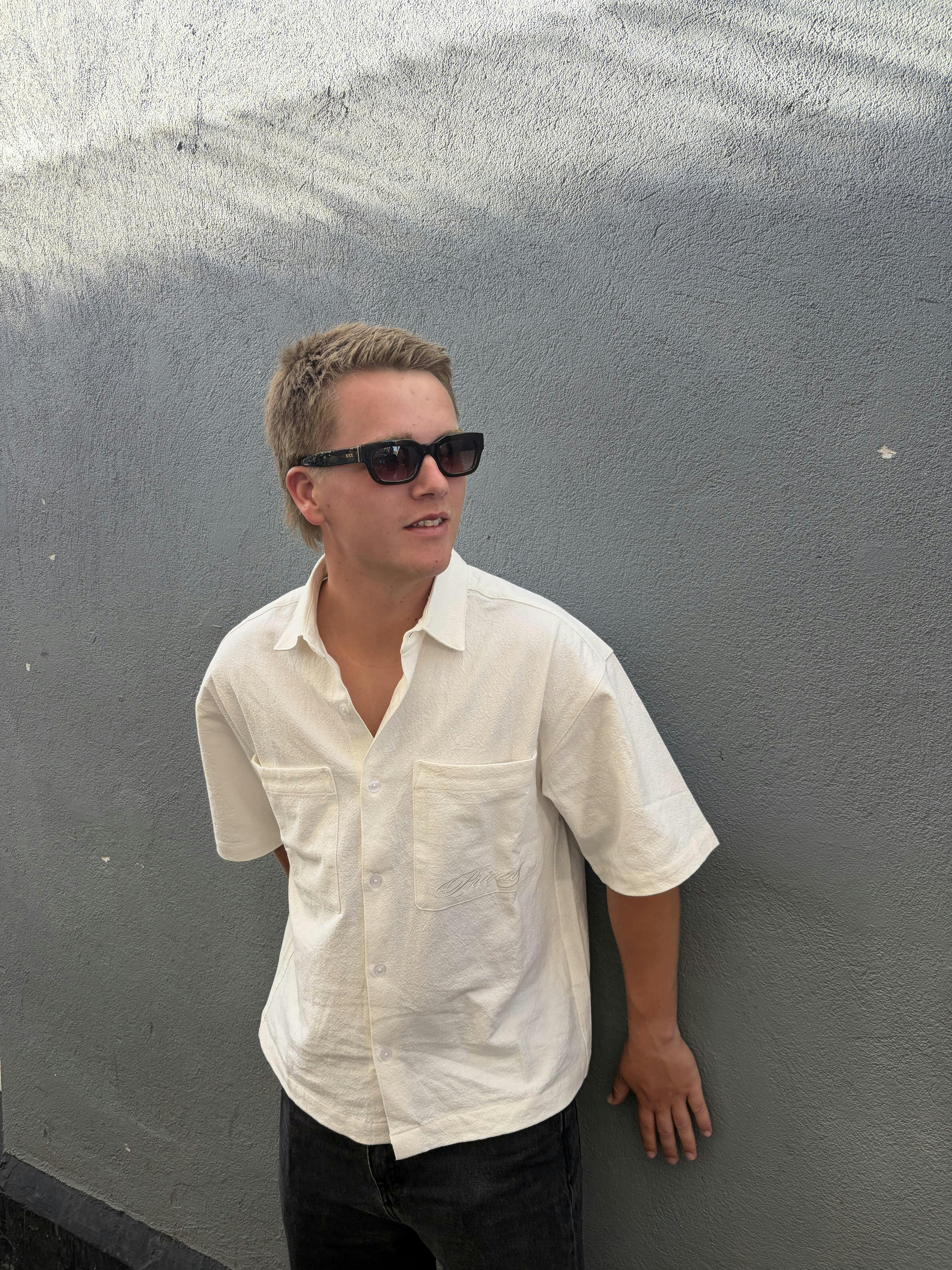Designed with a boxy, relaxed silhouette, it features double chest pockets and subtle logo embroidery for a clean, branded finish. Whether layered or worn on its own, it’s the kind of staple that adds depth to any fit.